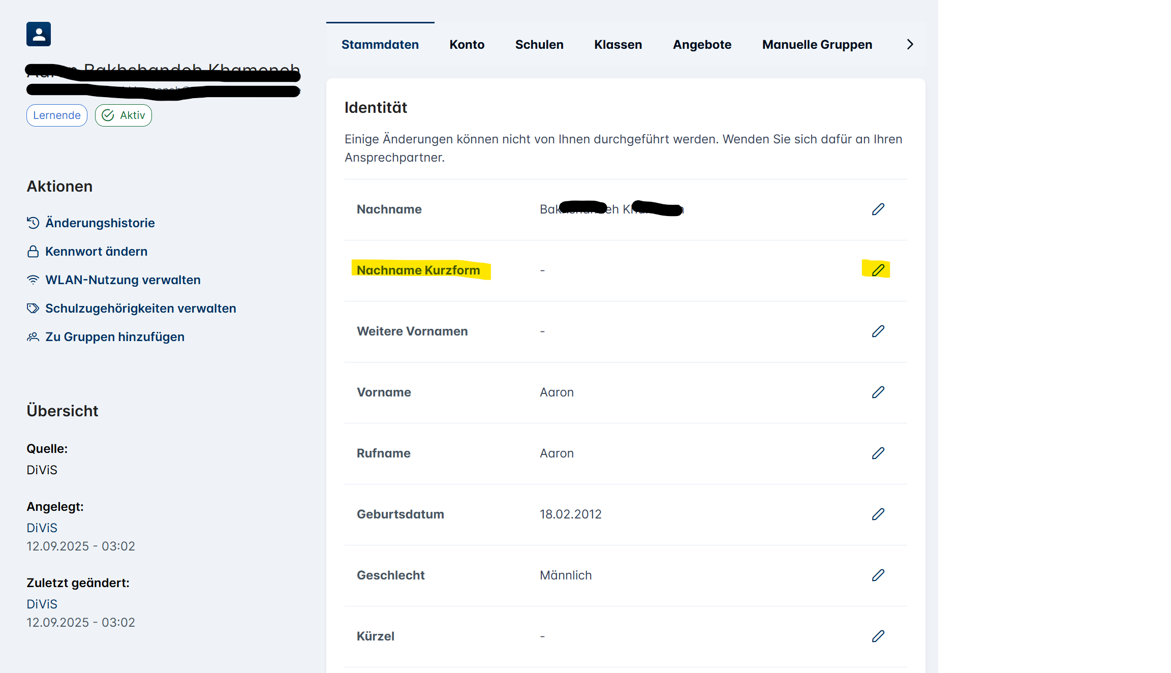 Ihre Benutzerkennung ändert sich bei Namensänderung, Schulkürzeländerung oder bei einem Wechsel Ihrer Stammschule.